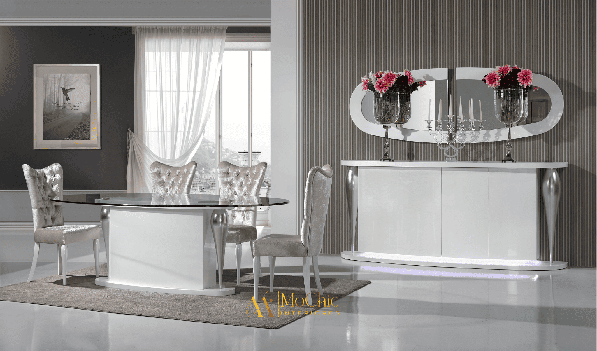 MADEIRA LAQUEADA, TECIDO E METAL ESCOVADO DOURADO